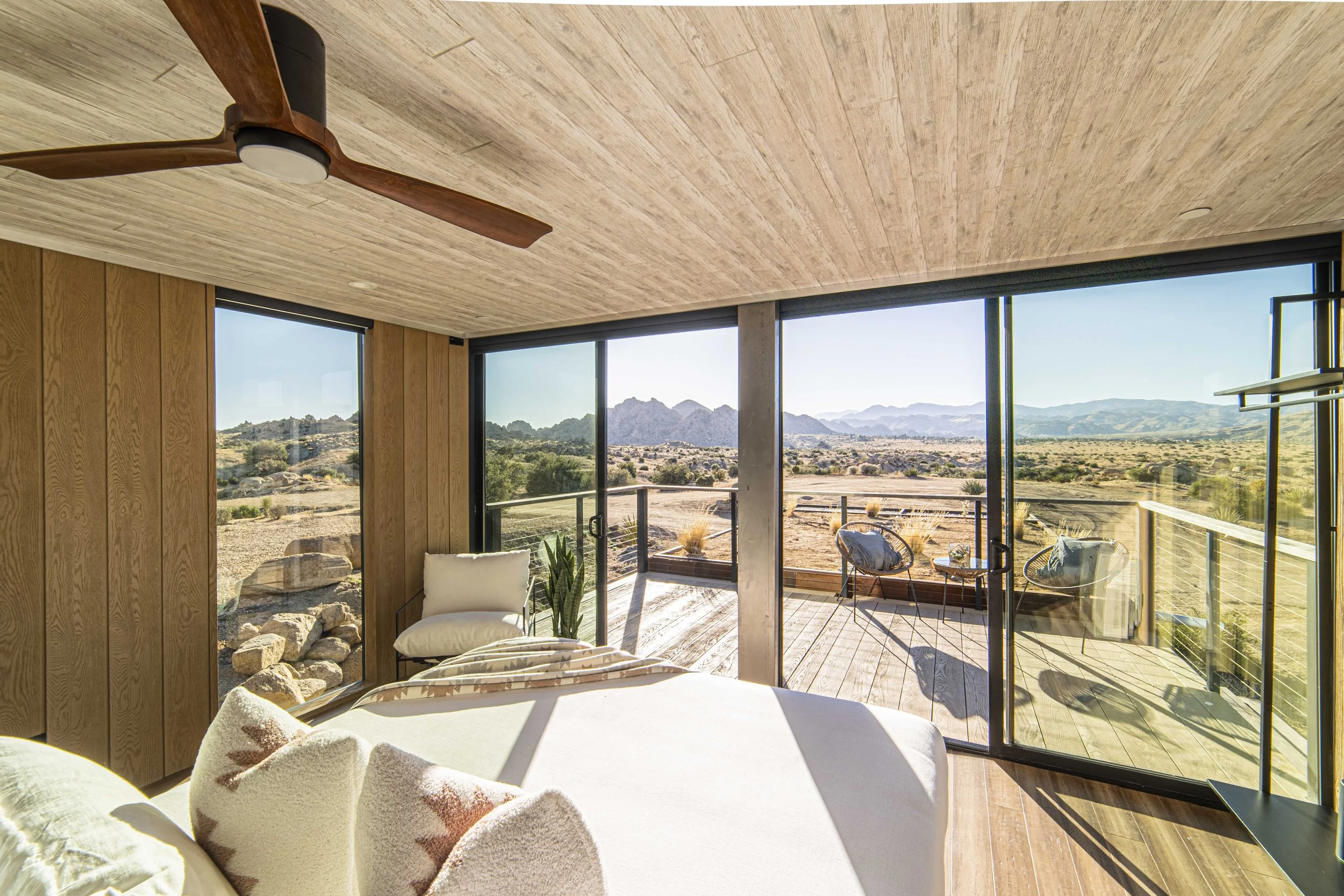 Meet Skyline Ranch — the heavyweight champ of desert escapes. At 7,000 square feet with six en-suite bedrooms, this glass-walled villa sprawls across 350 acres of raw Pioneertown desert. It’s less a vacation rental, more a private nation-state (don’t worry, no visa required).